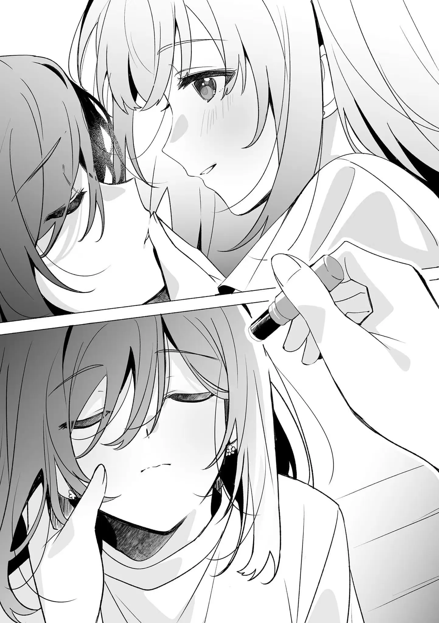 谈一下我最喜欢也是本作最有魅力的一点,就是宫城仙台两人之间若即若离的距离感和彼此之间的拉扯。羽田老师对于双方距离感这方面的把控是很优秀的,通过一步步的拉扯来拉近或拉远宫城仙台的距离,所以有时在文中能看到明明宫城仙台的行为已经超越了普通朋友,但是却连互相称呼对方名字都难以说出口。就算有时看起来距离被突然拉的很近了,但到最后也还是保持原样。即便是到了大学篇里面,她们也是用的室友这一身份而非朋友,就算可以借此做到每天都见面,但面对突然拉近的现实距离,让有一段时间里两人都不知道该怎么做,反而使宫城和仙台彼此间有些隔阂,两人心灵上的距离却有些拉远了,直到后面才开始恢复正常。我个人是很喜欢羽田老师笔下宫城与仙台的拉扯日常,不同于一大步地拉近关系,这种比较慢节奏的方式并在点滴生活中互相确认彼此的心意,更能让人能直观感觉到她们之间的情感是在逐渐加深,通过这种看似有些疏远对方的拉扯行为来暗中拉近了双方之间的距离。而且在这种一拉一扯的言行举止之中,再搭配上双视角,就非常能展现出角色的魅力,明明表面各处说着不在意的傲娇宫城但实际上独占欲却很强(是的在后面你甚至能看到宫城会吃仙台与自己朋友宇都宫的醋)和明明在心里面对宫城情感时会感到迷茫不知所措但动起手来毫不犹豫的仙台(实战比预想还快的实干派这一块)。所以很多时候宫城的言行就如仙台所认为的小野猫一样,而仙台的言行也确实如宫城认为的波索尔犬一般。到了作品的中后期,宫城仙台仍经常互有拉扯,但能很明显的感受到的是后期的拉扯与前期的是不大一眼的,可能是因为宫城仙台两人之间的距离其实是明显地在一点点缩短,也会开始走入彼此的内心,占据一定的分量。得益于上面所说的双视角,我们能够清楚的了解到在每次的拉扯之中,宫城仙台到底是怎么想的,以及她们在拉扯之中那些不能向对方言明的心意。虽然有时看起来一些拉扯行为是有些扭曲的感觉,但是结合上宫城仙台两人本身都是性格有些扭曲的人,反而有种负负得正,好像扭着扭着也挺正常的感觉。对于宫城来说,本身就是以一个人独处居多的单亲家庭,性格自然会有些扭曲,所以才会对美好的事物害怕失去所以独占欲很强,而对于仙台来说,经历过小时候家人融洽的氛围,却在日渐长大中,发现自己并不受父母的待见,父母的重心也都放在自己姐姐身上,所以才会尽力去融入学校上位的集体中,才会珍惜那段待在宫城的房间而非自己家里的时光,也更加珍惜在宫城面前能够不必迎合他人只是单纯做自己的机会。这样看下来,那些看似有些扭曲且不正常的拉扯行为或许才是她们真正内心的正常体现。