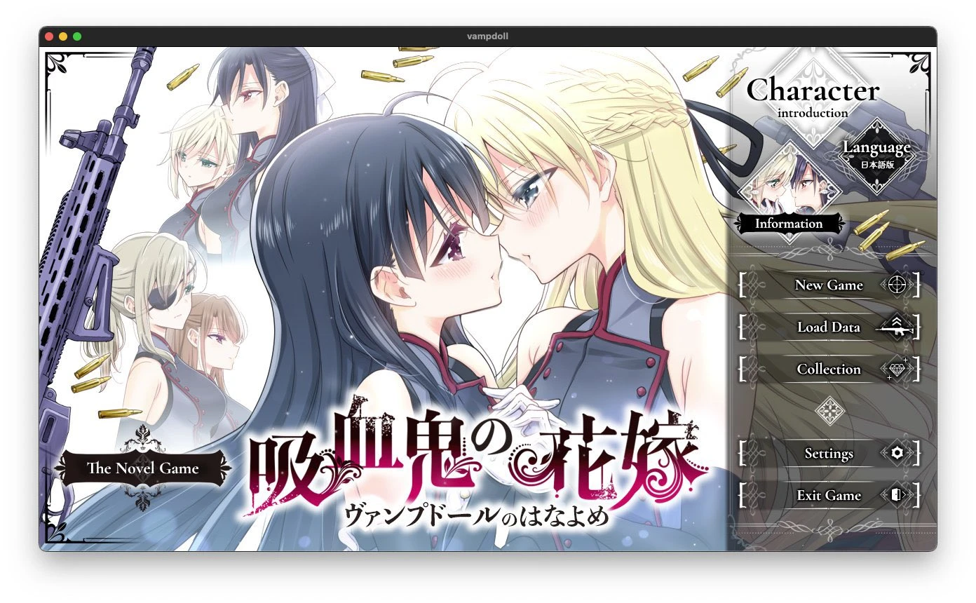 本作是画师嵩乃朔运营的同人社团 Waterfall 创作的“吸血鬼×军服×百合”主题漫画系列的衍生作品,该系列讲述了吸血鬼与人类少女各自怀着不同思念的百合爱情故事,目前已发售多卷漫画和小说、广播剧等大量衍生作品。本作由 mirai works 代理发行,支持简体中文、繁体中文、英文和日文四种语言,其中日语版由 Waterfall 单独发行。游戏预计将于 2025 年内发售。